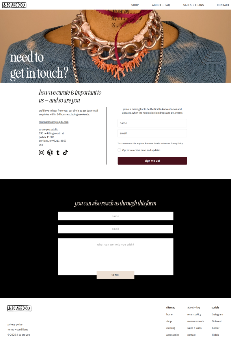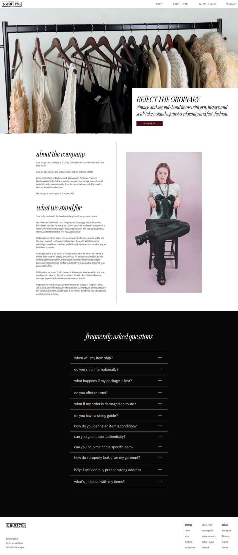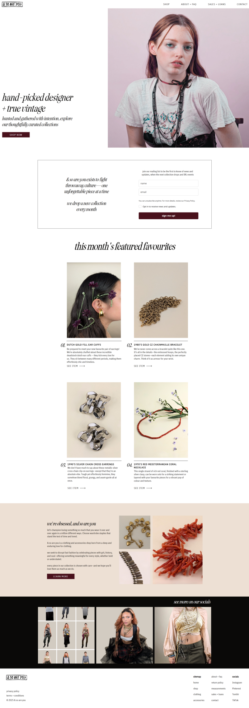 With & so are you, we wanted to make the site feel editorial yet approachable, focusing on design that makes you want to explore her collection while highlighting the company's approach towards fashion as a political statement.